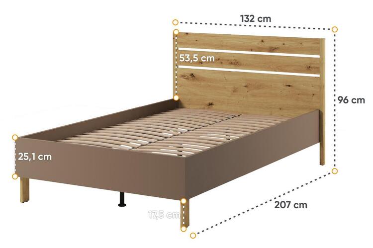 Postel s roštem v ceně. Rozměry viz obrázek. Tento sektorový nábytek nejen pro teenagery působí nejen příjemně, ale má i svůj specifický charakter. Je vyroben z kvalitní LTD 16 mm hraněné ABS páskou. Jemné spojení lanýžového odstínu a dekoru v barvě dub artisan činí tuto kolekci nejen stylovou, ale také nadčasovou. Matraci je třeba dokoupit, vhodný rozměr je 120 × 200 cm. Doporučujeme i dokoupení béžového zahlavníku, který dodá větší komfort pro uživatele postele, naleznete v doporučených položkách. Dodáváme v demontovaném stavu.