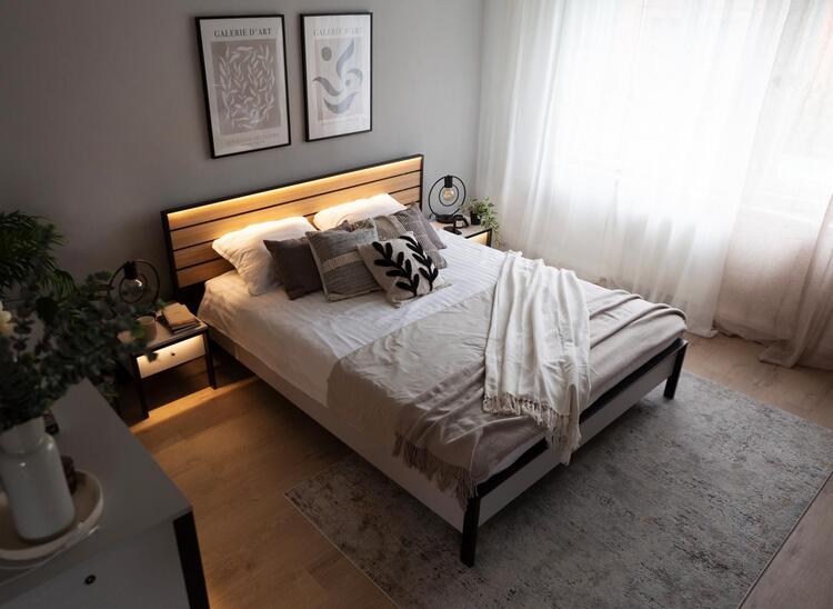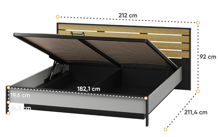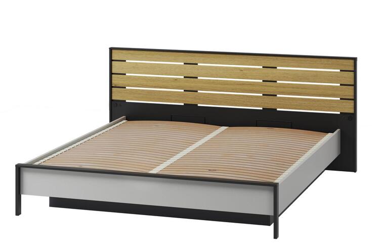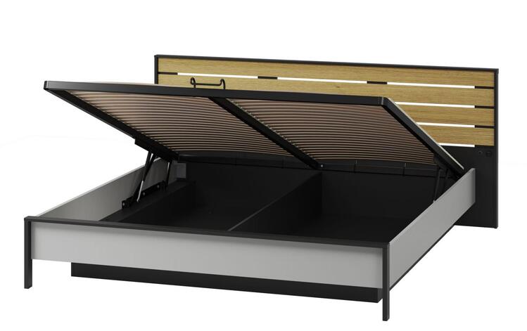 Postel s čelem doplněno osvětlením LED páskou v ceně a úložným prostorem pod matrací (zvedací laťový rošt) je perfektní volbou pro ty, kteří ocení komfort a praktičnost. Pomocí tohoto úložného prostoru snadno uskladníte ložní prádlo, deky nebo polštáře, čímž šetříte místo ve skříni.Kolekce je příkladem pohodlí, funkčnosti a elegantního designu. Každý kus nábytku v této kolekci je vyroben z kvalitních materiálů, které zaručují dlouhou životnost.Jemný odstín šedé s černými detaily (čelo je barvy přírodní dub) dodají ložnici nejen výrazný charakter, ale také vytvoří ideální prostředí pro relaxaci a odpočinek.Vhodná matrace k dokoupení je 180×200 cm nebo 2× 90×200 cm. Rozměry viz obrázek. Dodáváme v demontovaném stavu.CASA 73043