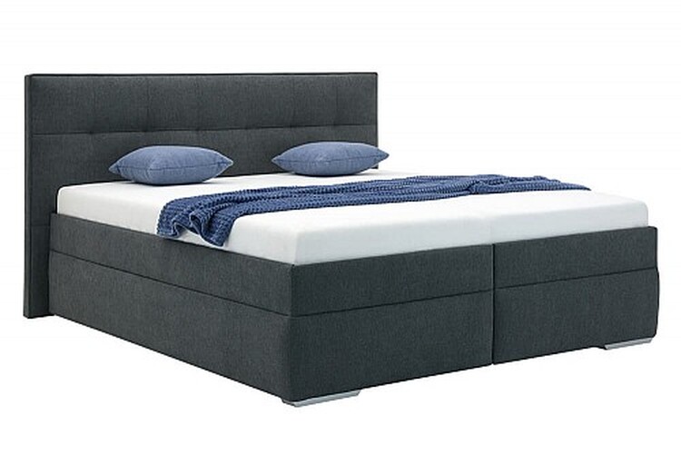 Vysoké čalouněné čelo s jemným prošíváním poskytuje oporu přisezení a zároveň působí jako decentní designový prvek. Celá postel jepotažena kvalitní tmavě šedou látkou, která se dobře kombinujes dalšími doplňky v interiéru.