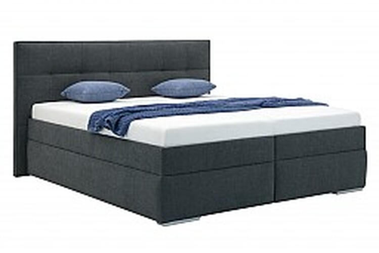 Postel stojí na nízkých stříbrných nožkách, které zajišťujípotřebnou stabilitu a doplňují celkový vzhled. Rám je pevný a stabilní,potažený kvalitní textilií v neutrálním odstínu, který se dobřekombinuje s různými typy interiéru.