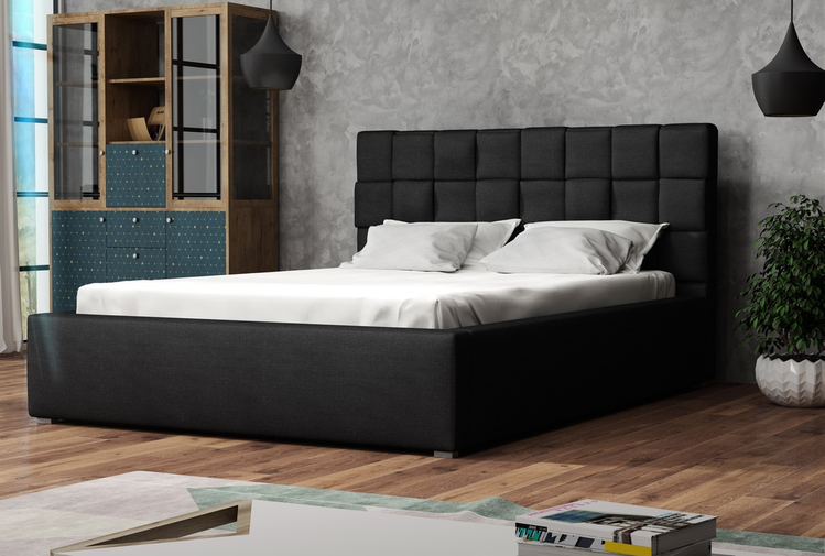 Elegantní postel s vysokým prošívaným čalouněným čelem. Nožky jsou plastové v šedé barvě. Rošt je v ceně, ale matrace je potřeba doobjednat. Vhodný rozměr matrace je 200 × 200 cm. Za příplatek je možné objednat postel s kovovým zvedacím roštem, tím vznikne pod ložnou plochou úložný prostor. Cena za postel s kovovým roštem na vyžádaní. Změnu roštu je nutné zadat při první objednávce. Výška bočnice od země je 34 cm, výška roštu od země je cca 24 cm. Dodáváme v demontovaném stavu.CASA 34005