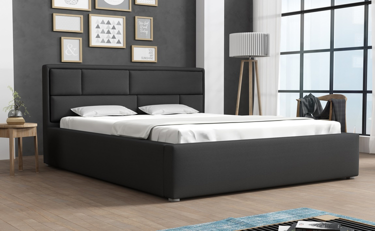 Elegantní postel s vysokým prošitým čalouněným čelem. Konstrukce je potažena látkou v tmavě šedé barvě. Nožky jsou plastové v šedé barvě. Rošt je v ceně, ale matrace je potřeba doobjednat, vhodný rozměr 180 × 200 cm nebo 2 x matrace 90 × 200 cm. Za příplatek je možné objednat postel s kovovým zvedacím roštem, tím vznikne pod ložnou plochou úložný prostor. Cena za postel s kovovým roštem na vyžádaní. Změnu roštu je nutné zadat při první objednávce. Výška bočnice od země je 34 cm, výška roštu od země je cca 24 cm. Dodáváme v demontovaném stavu.CASA 34004