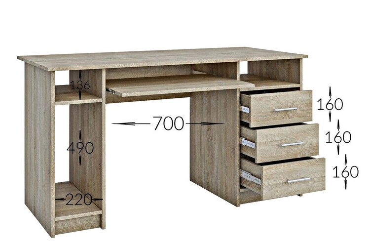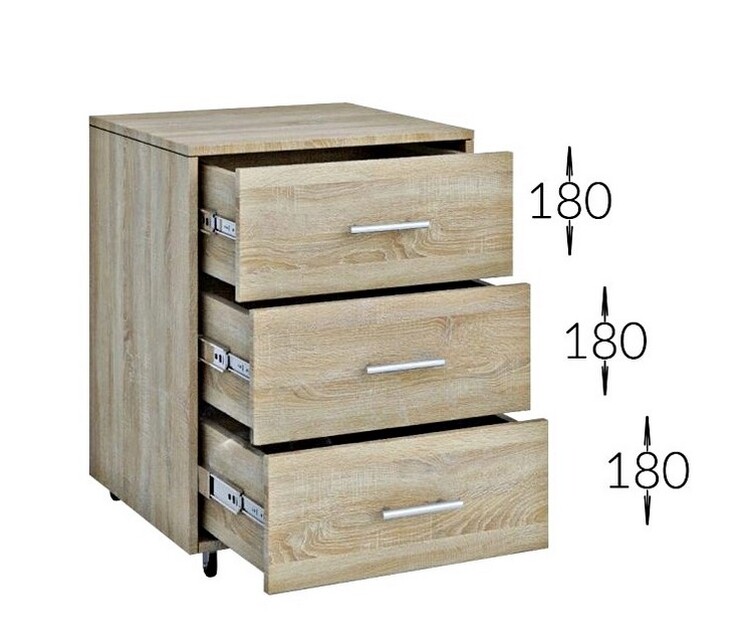 Pracovní sestava v praktickém provedení – sestava se skládá (šxvxh) – regál s dvířky a policemi ( 45 × 45 × 200 cm ) ),psací stůl se zásuvkami ( 140 × 60 × 75 cm ) a kontejner se 3 zásuvkami ( 50 × 45 × 64,5 cm ). Korpus i dvířka jsou z kvalitní LTD v barvě dub sonoma. Možnost koupení jednotlivých dílů zvlášť. Dodáváme v demontovaném stavu.CASA 83034