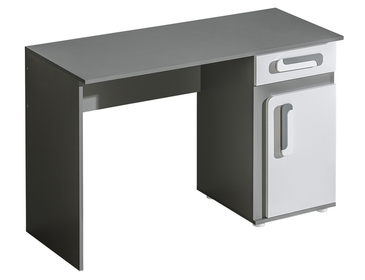 Pracovní stůl APETTITA ze sektorové řady, která se vyznačuje netradičním zpracováním barev a originalitou úchytů. Tento styl nábytku zaujme každou mladší generaci. Nábytek je vyroben z kvalitní LTD desky hraněné ABS lištou. Korpus je v barvě šedá antracit, dvířka a čela zásuvek jsou bílé... více informací o zboží