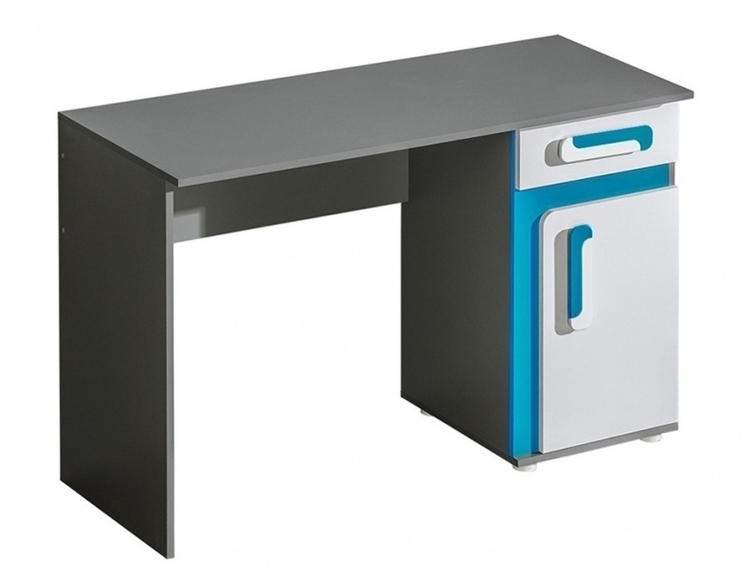 Pracovní stůl APETTITA ze sektorové řady, která se vyznačuje netradičním zpracováním barev a originalitou úchytů. Tento styl nábytku zaujme každou mladší generaci. Nábytek je vyroben z kvalitní LTD desky hraněné ABS lištou. Korpus je v barvě šedá antracit, dvířka a čela zásuvek jsou bílé... více informací o zboží