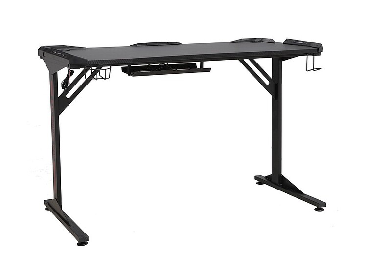 Moderní pracovní stůl s věšáčky na straně stolu k zavěšení např. sluchátek, pití apod.. Součástí stolu je LED osvětlení. Konstrukce je z kovu v černé barvě, deska je z kvalitní LTD v černé barvě. Dodáváme v demontovaném stavu.CASA 12099