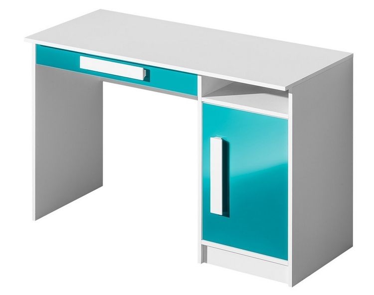 Pracovní stůl se zásuvkou a policovou skříní ze sektorové řady GULLIWER, která se vyznačuje netradičním zpracováním barev a originalitou úchytů. Tento styl nábytku zaujme každou mladší generaci. Psací stůl je vyroben z kvalitní LTD desky hraněné ABS lištou. Korpus je v barvě bílá mat, dveře jsou barvě tyrkysová lesk. Úchytky jsou v barvě bílé. Sektorový nábytek GULLIWER má široký výběr prvků, který Vám zaručí sestavit si dětský nebo studentský pokoj, ložnici či kancelář podle svých potřeb, přání a představ. Dodáváme v demontovaném stavu.CASA 23002