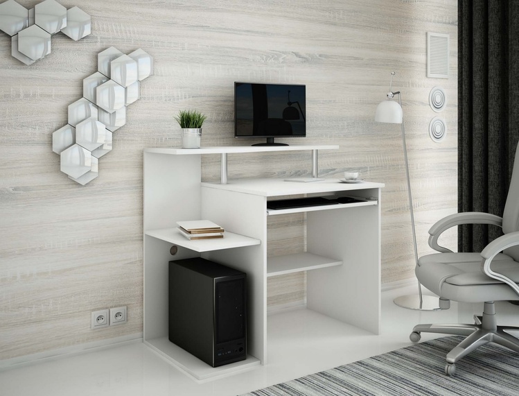 PC stolek s dostatkem polic, který je vyrobený z kvalitního lamina. Stolek obsahuje výsuvnou poličku pro klávesnici. Lamino je odolné proti poškrábání, poškození, vlhkosti a vysokým teplotám. Stolek je v barevném provedení matná bílá. Dodáváme v demontovaném stavu.CASA 53023