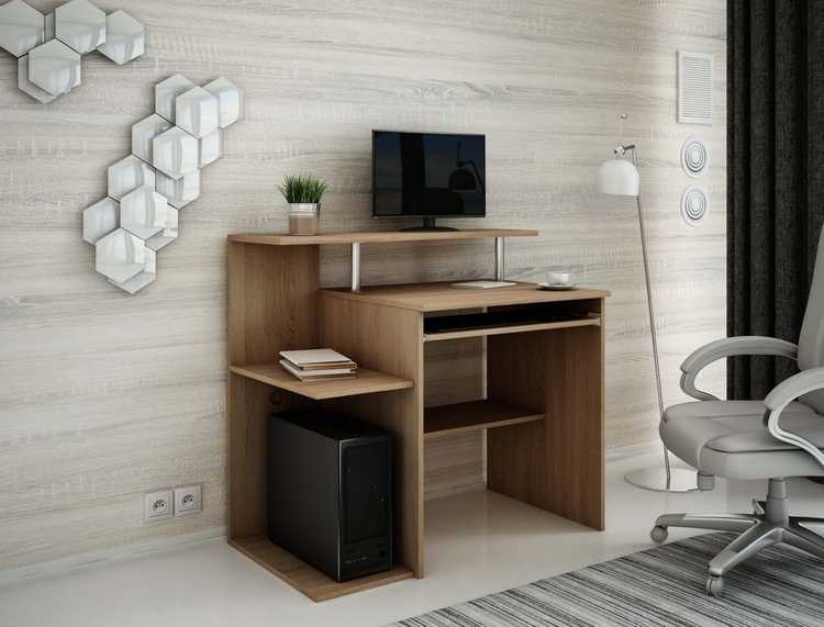 PC stolek s dostatkem polic, který je vyrobený z kvalitního lamina. Stolek obsahuje výsuvnou poličku pro klávesnici. Lamino je odolné proti poškrábání, poškození, vlhkosti a vysokým teplotám. Stolek je v barevném provedení dub sonoma. Dodáváme v demontovaném stavu.CASA 53023