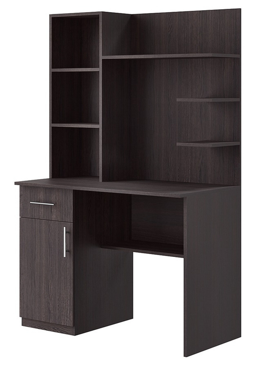 Praktický pracovní stůl s policovým nástavcem je vyroben z LTD desky odolné vůči poškrábání v barvě wenge. Stůl má na levé straně skříňku a nad ní zásuvku. Výška stolu včetně nástavce je 166,5 cm, hloubka nástavce je 30 cm. Výška pracovní plochy je 76,5 cm. Dodáváme v demontovaném stavu.CASA 19006