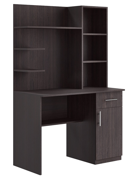 Praktický pracovní stůl s policovým nástavcem je vyroben z LTD desky odolné vůči poškrábání v barvě wenge. Stůl má na pravé straně skříňku a nad ní zásuvku. Výška stolu včetně nástavce je 166,5 cm, hloubka nástavce je 30 cm. Výška pracovní plochy je 76,5 cm. Dodáváme v demontovaném stavu.CASA 19006