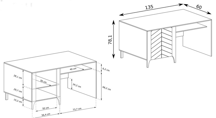 Díky skříňce s vnitřními policemi a výsuvnou deskou na klávesnici