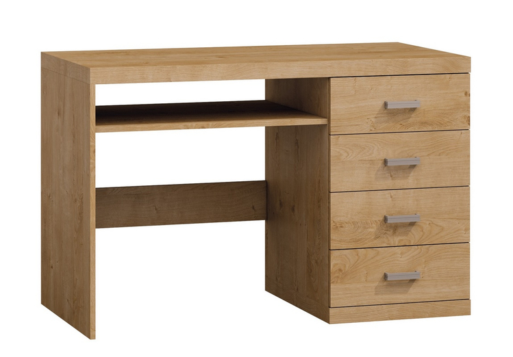 Pracovní stůl má 4 praktické zásuvky a poličku. Jedná se o stylovou kolekci nábytku moderního stylu, který je vhodný do obývacího pokoje a ložnice. Barevné provedení dub ribbeck. Nábytek je vyroben z kvalitního lamina 16 mm, některé desky jsou zesíleny na 48 mm, vše ohraničené ABS páskou.... více informací o zboží