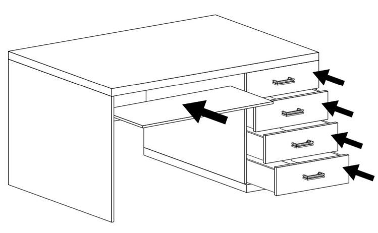 Pracovní stůl má 4 praktické zásuvky a poličku. Jedná se o stylovou kolekci nábytku moderního stylu, který je vhodný do obývacího pokoje a ložnice. Barevné provedení dub ribbeck. Nábytek je vyroben z kvalitního lamina 16 mm, některé desky jsou zesíleny na 48 mm, vše ohraničené ABS páskou. Zásuvky jsou opatřeny systémem PUSH TO OPEN ( zatlač a otevři ). Dodáváme v demontovaném stavu.CASA 71020