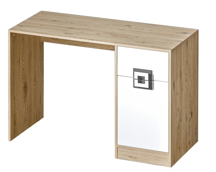 Pracovní stůl NIKO ze sektorové řady, která se vyznačuje netradičním zpracováním barev a originalitou úchytů. Tento styl nábytku zaujme každou mladší generaci. Psací stůl je vyroben z kvalitní LTD desky hraněné ABS lištou. Korpus je v barvě dub jasný, dvířka jsou v barvě matná bílá. Úchytky... více informací o zboží