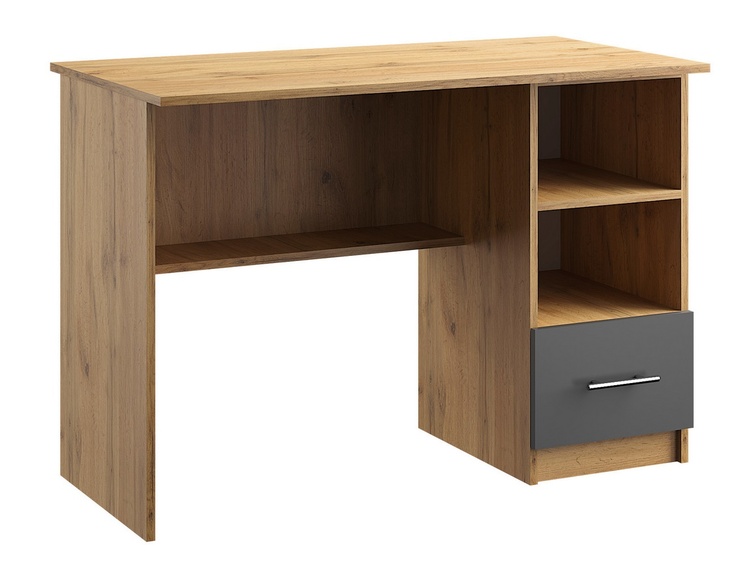 Praktický pracovní stůl se zásuvkou je vyroben z LTD desky odolné vůči poškrábání v barvě dub apalačský, čelo zásuvky je v barvě šedá, provedení pravé. Dodáváme v demontovaném stavu.CASA 19022