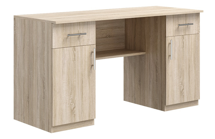 Praktický pracovní stůl je vyroben z LTD desky odolné vůči poškrábání v barvě dub sonoma. Stůl má na každé straně skříňku a nad ní zásuvku. Dodáváme v demontovaném stavu.CASA 19004
