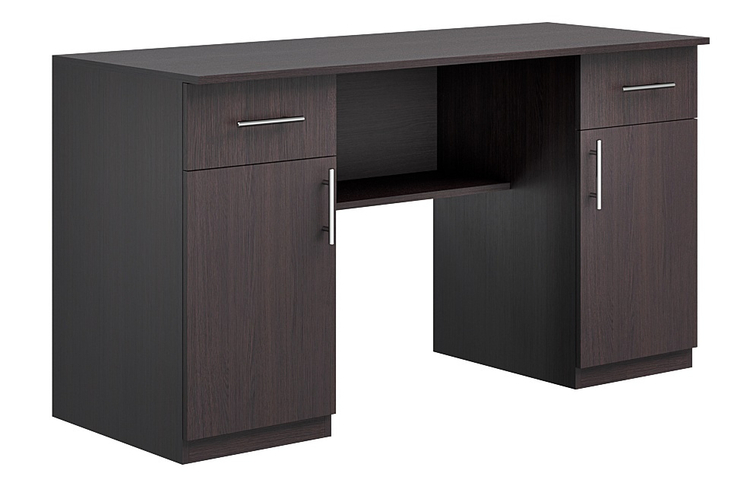 Praktický pracovní stůl je vyroben z LTD desky odolné vůči poškrábání v barvě wenge tmavá. Stůl má na každé straně skříňku a nad ní zásuvku. Dodáváme v demontovaném stavu.CASA 19004