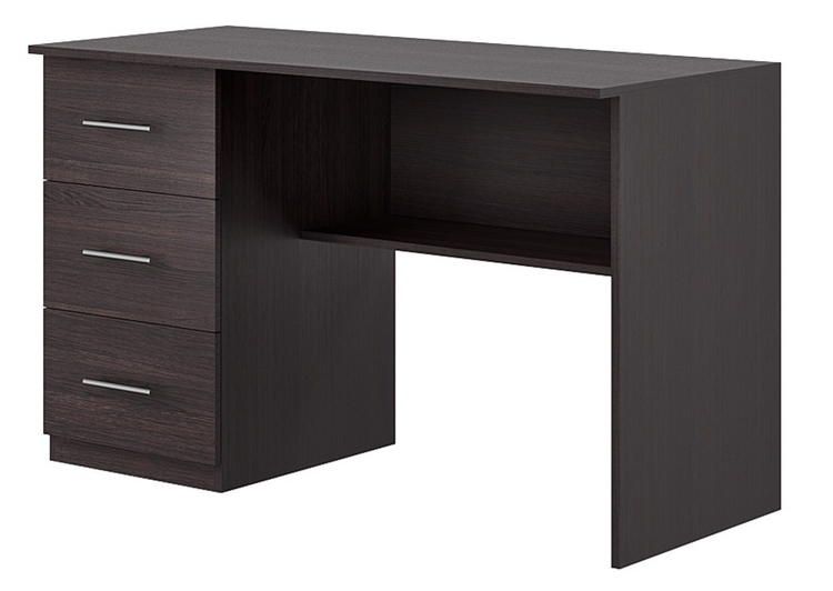 Praktický pracovní stůl je vyroben z LTD desky odolné vůči poškrábání v barvě wenge tmavá. Stůl má na levé straně tři zásuvky. Dodáváme v demontovaném stavu.CASA 19005