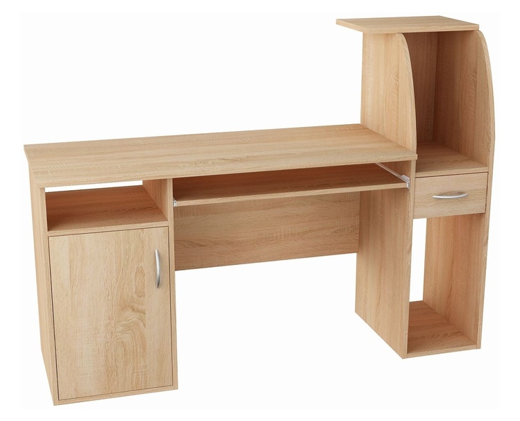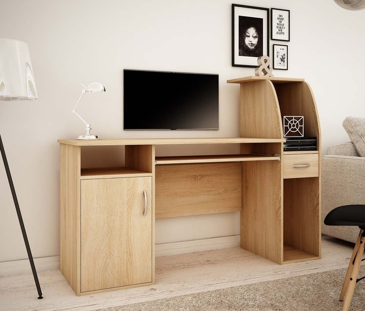 PC stolek s dvířky, zásuvkou a policemi, který je vyrobený z kvalitního lamina. Stolek obsahuje výsuvnou poličku pro klávesnici. výška pracovní desky je 74 cm, šířka má 120 cm. Lamino je odolné proti poškrábání, poškození, vlhkosti a vysokým teplotám. Stolek je v barevném provedení dub sonoma.... více informací o zboží