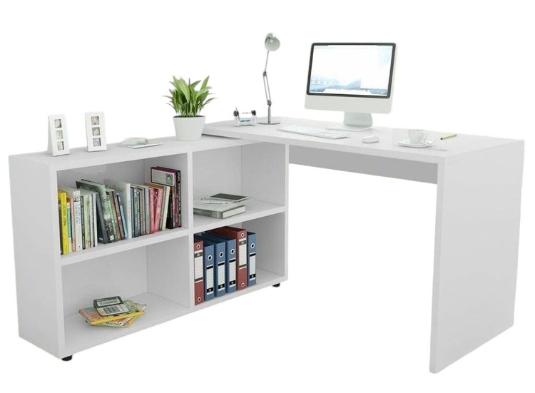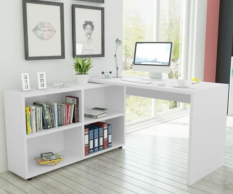 Pracovní stůl s praktickým policovým regálem na odkládání šanonů a jiných kancelářských potřeb je vyrobený z desky LTD v barvě matná bílá. Dodáváme v demontovaném stavu.CASA 83193