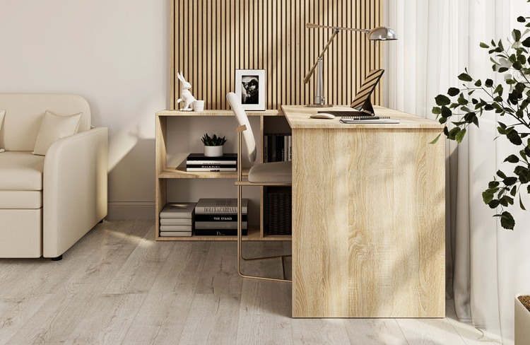 Pracovní stůl je praktickou volbou do studentského pokoje či kanceláře.Sestává ze samotného stolu a regálu předěleného na čtyři částí vyrobený z desky LTD v barvě dub sonoma.Dodáváme v demontovaném stavu.CASA 83193