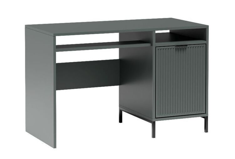 Moderní pracovní stůl s dvířky a úložným prostoremi, což z něj činí velmi praktický kus nábytku.