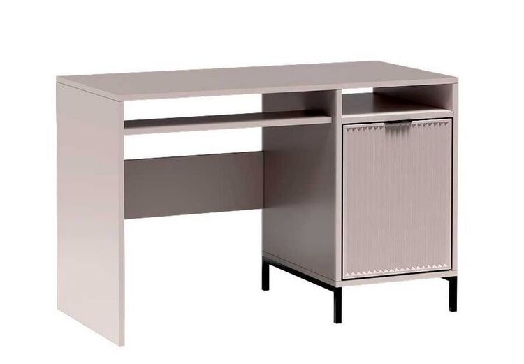 Moderní pracovní stůl s dvířky a úložným prostoremi, což z něj činí velmi praktický kus nábytku.