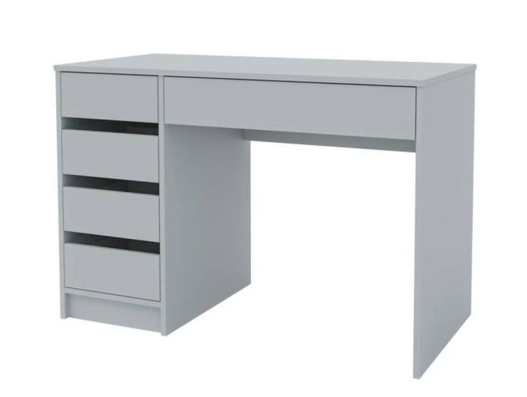Elegantní pracovní stůl. Je mimořádně praktický díky pěti zásuvkám na teleskopických kolejnicích. je vyrobený z kvalitní laminátové desky v barevném provedení činčila grey. Jde o levou variantu, lze zakoupit i opačnou verzi. Dodáváme v demontovaném stavu.CASA 83182