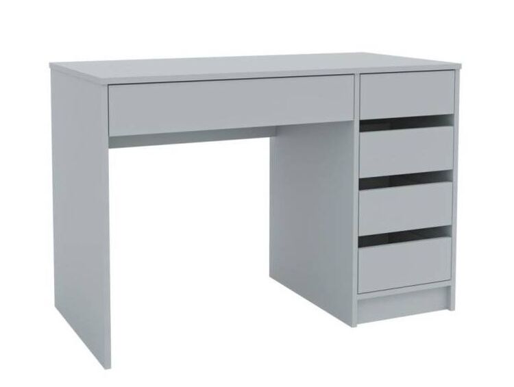Elegantní pracovní stůl. Je mimořádně praktický díky pěti zásuvkám na teleskopických kolejnicích. je vyrobený z kvalitní laminátové desky v barevném provedení činčila grey. Jde o pravou variantu, lze zakoupit i opačnou verzi. Dodáváme v demontovaném stavu.CASA 83182