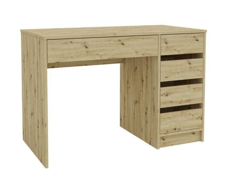 Elegantní pracovní stůl. Je mimořádně praktický díky pěti zásuvkám na teleskopických kolejnicích. je vyrobený z kvalitní laminátové desky v barevném provedení dub artisan. Jde o pravou variantu, lze zakoupit i opačnou verzi. Dodáváme v demontovaném stavu.CASA 83182