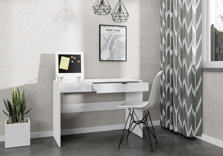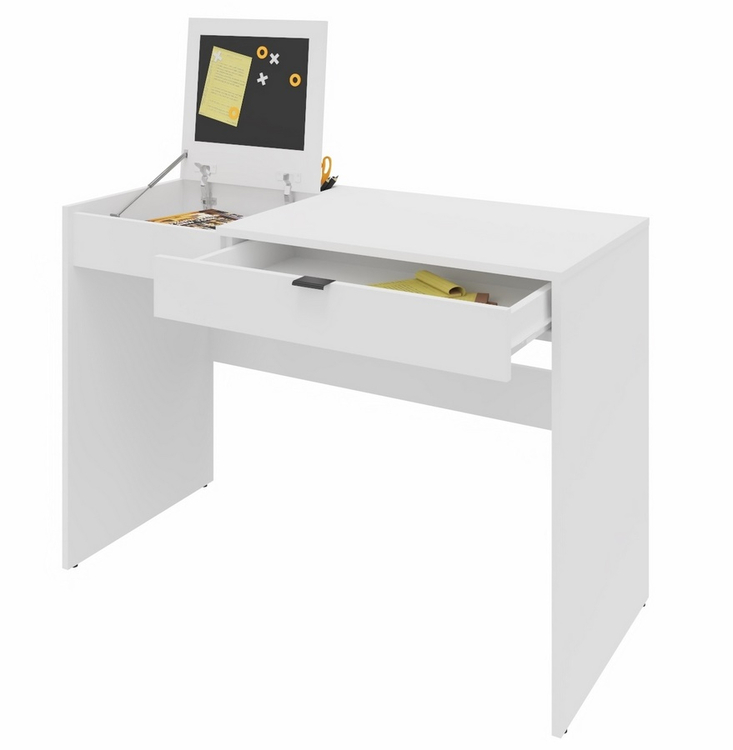 Skvělý pracovní stůl pro školáky! Stůl má klasický šuplík a druhý úložný prostor, kde po otevření získáte navíc i malou magnetickou tabuli. Dalším bonusem jsou pak zabudované 2 přihrádky pro drobnosti v rohu stolu. Ideální do malých dětských pokojů či pracoven. Barevné provedení – barva bílá... více informací o zboží