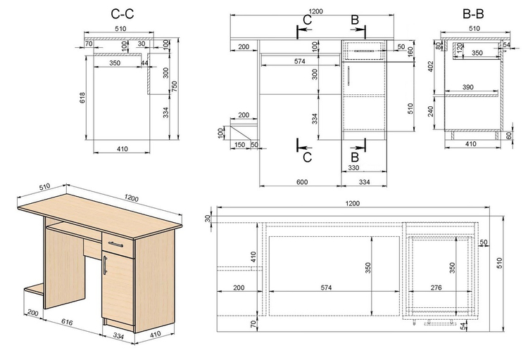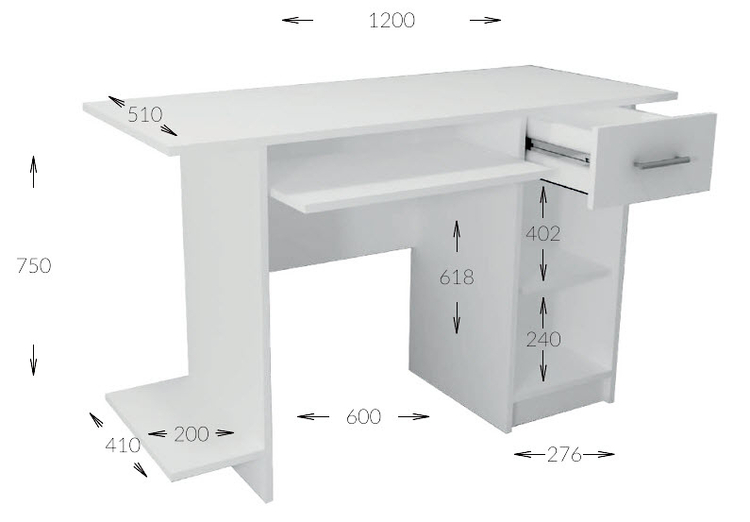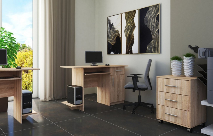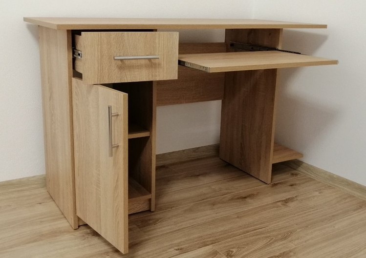 Pracovní stůl se zásuvkou a dvířky napravo je proveden v jednoduché praktické linii, který se hodí do moderního interiéru. Korpus je vyroben z LTD desky odolné vůči poškrábání v barvě dub sonoma. Dodáváme v demontovaném stavu.CASA 83024