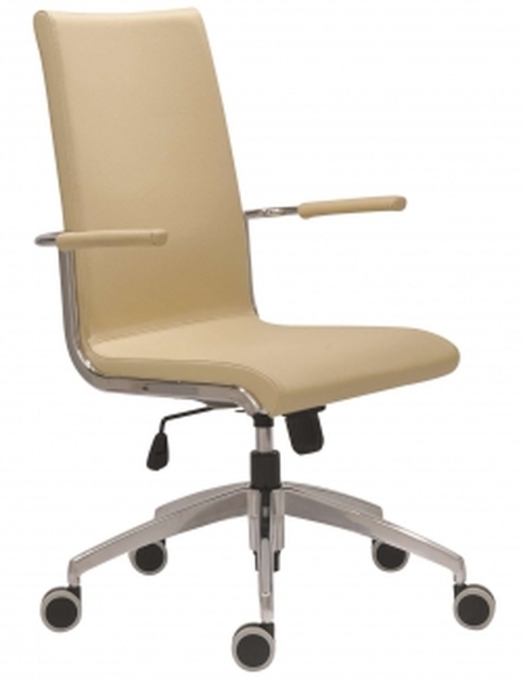 Židle s područkami, houpací mechanismus s aretací v základnípoloze a nastavitelnou silou protiváhy, prošívané čalounění,chromovaný ocelový rám a ALU leštěná báze, kolečka pro všechnypovrchy, nosnost 120 kg, český výrobek, záruka 36 měsíců.