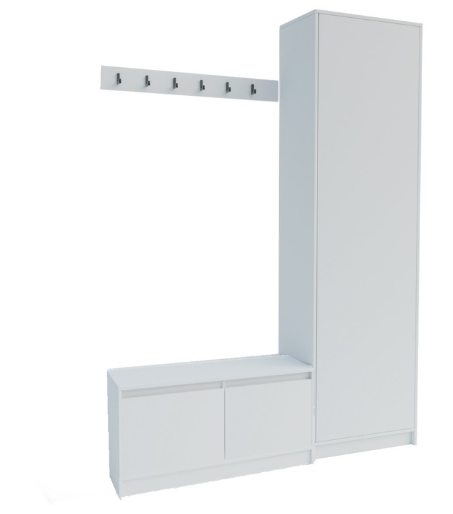 Moderní předsíňová sestava v minimalistickém provedení promění Vaši vstupní chodbu ve stylový a funkční prostor. Nabízí dostatek úložného místa a díky jednoduchým liniím působí moderně a vzdušně. Součástí předsíňové stěny je: Šatní skříň. nízký botník a věšákový panel. Rozměry viz obrázky. Další parametry a vlastnosti – materiál: LTD o tloušťce 16 mm, barevné provedení: bílá mat (nymfeja alba). Rozměry: šířka 150 cm / výška 205 cm. Nabízíme i vetši rozměr i s jinou barvou. Dodáváme v demontovaném stavu.CASA 83176