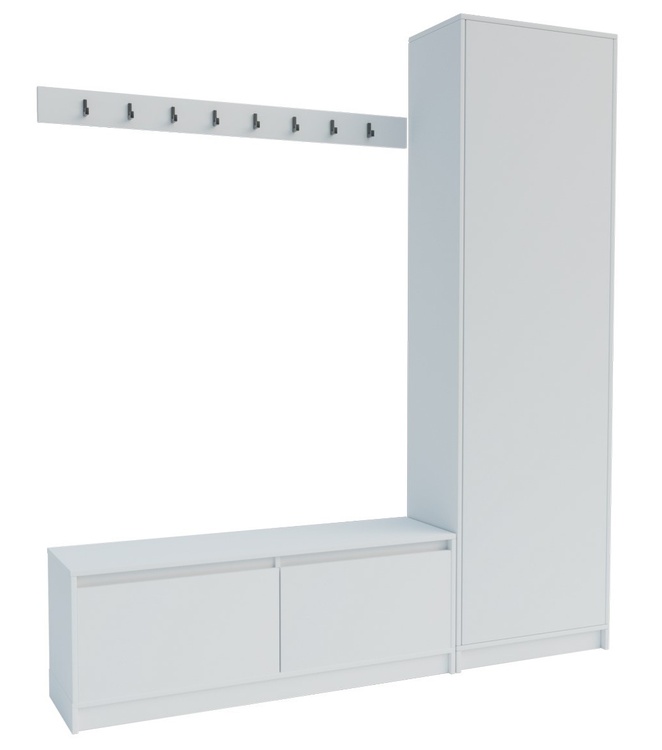 Moderní předsíňová sestava v minimalistickém provedení promění Vaši vstupní chodbu ve stylový a funkční prostor. Nabízí dostatek úložného místa a díky jednoduchým liniím působí moderně a vzdušně. Součástí předsíňové stěny je: Šatní skříň. nízký botník a věšákový panel. Rozměry viz obrázky. Další parametry a vlastnosti – materiál: LTD o tloušťce 16 mm, barevné provedení: bílá mat (nymfeja alba). Rozměry: šířka 180 cm / výška 205 cm. Nabízíme i menší rozměr i s jinou barvou. Dodáváme v demontovaném stavu.