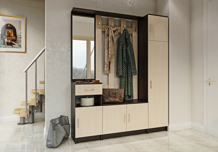 Předsíňová stěna je vytvořená v příjemných kontrastních barevných kombinacích. Vodorovné plochy jsou ve světlých odstínech, které opticky rozšiřují prostor. Je vyrobena z kvalitní laminátové desky v barvě dub mléčný, korpus je v barvě wenge. Sestava se skládá ( šxvxh ) – věšák ( 80 × 142 × 15... více informací o zboží