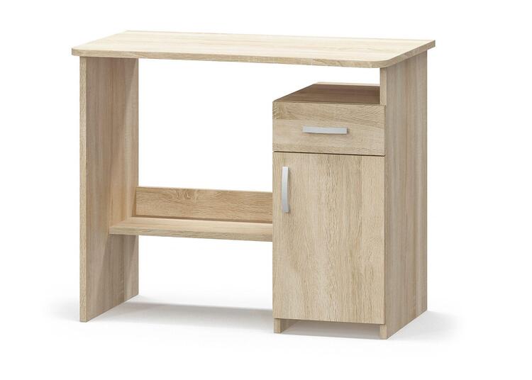 Psací stůl se skříňkou a zásuvkou vhodný do menších prostor je vyroben z kvalitní LTD v barevném provedení dub sonoma. Úchyty jsou kovové. Dodáváme v demontovaném stavu.CASA 97055
