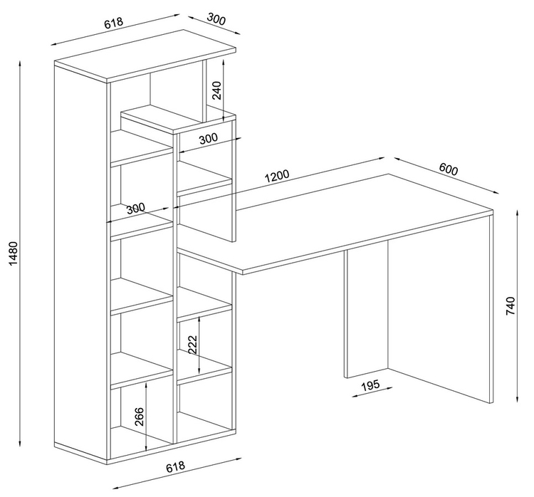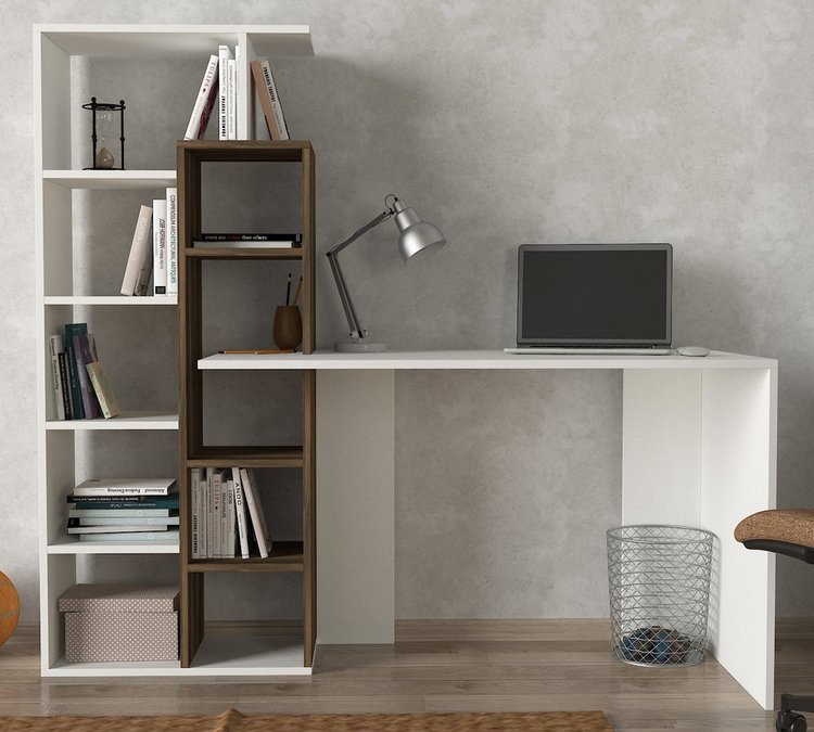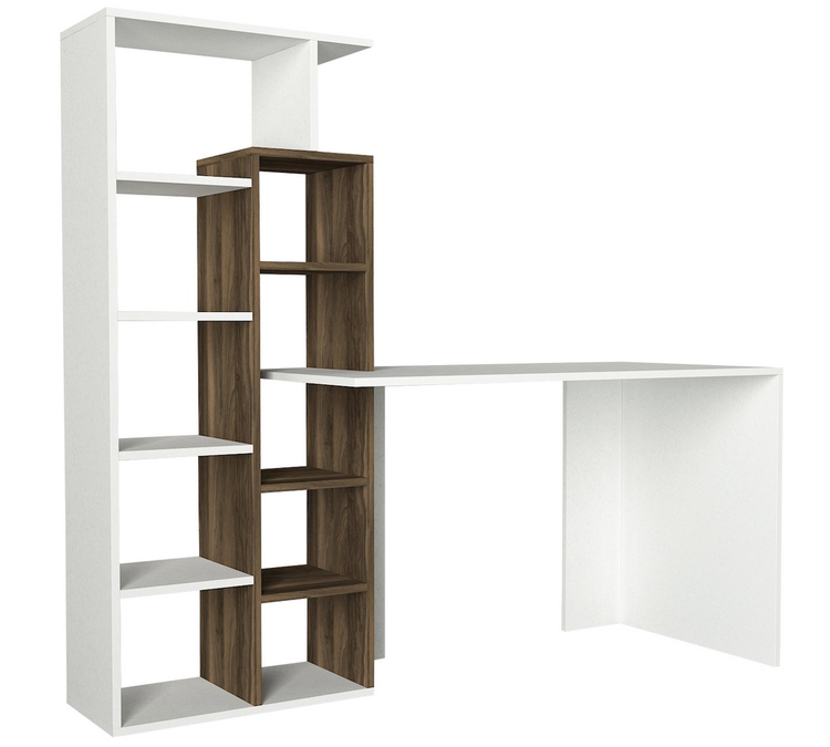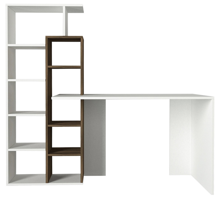 Psací stůl s regálem je vyroben z kvalitního lamina o tl.18 mm hraněné PVC páskou, odolného proti poškrábání v kombinaci barev matná bílá/vlašský ořech. Velikost regálu je (Š x V x H cm) 61,8 × 148 × 30 cm. Dodáváme v demontovaném stavu.CASA 28060