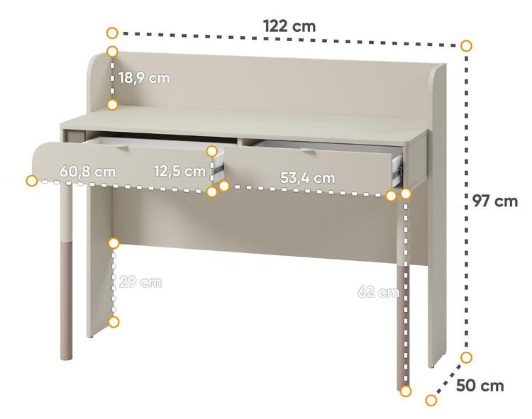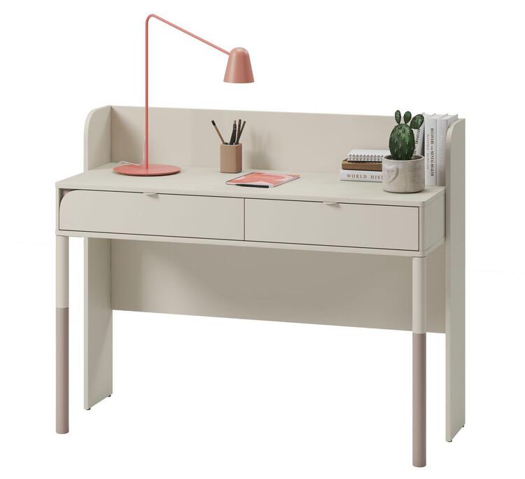 Pracovní stůl se dvěmi praktickýma zásuvkami. Nábytek pro teenagery, který díky něžnosti hlavně ocení divky, nabízí moderní a praktické řešení do pokojů. Kombinace kašmírové a lanýžové barvy vytváří elegantní a univerzální design. Vyniká zaoblenými čely, asymetrickým stylem a štíhlými nožkami,... více informací o zboží