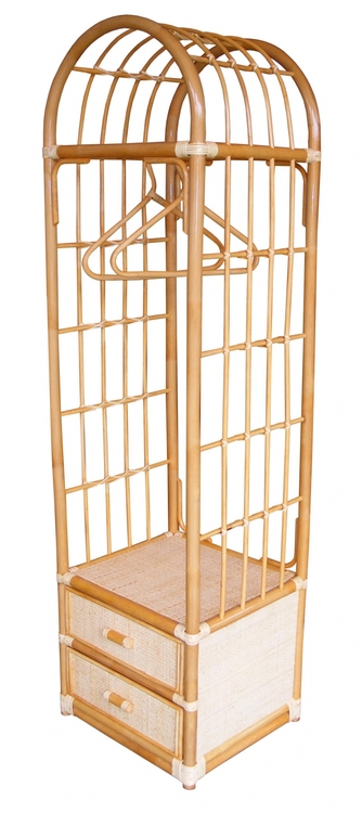 | Barva ratanové konstrukce i ratanového výpletu je světlý med.Rozměr výrobku 50×45×180 cmNa polici jsou vzhledové vady – tnavé skvrny na výpletu.Police je dodávána bez ramínek.