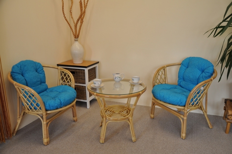Sedací souprava Bahama patří stále mezi nejoblíbenější ratanové sedací soupravy. Souprava se skládá ze dvou křesel, stolku se skleněnou deskou a kompletní sady polstrů. | Barva ratanové konstrukce je medová.Materiál konstrukce je přírodní ratan.Rozměr křesla je 68×66×73 cm, výška sedu 44 cm, nosnost křesla je 110 kg.Stolek má výšku 55 cm, průměr stolku 65 cm.Spoje ratanové konstrukce jsou šroubovány.Polstry na tuto sedací soupravu Bahama jsou vyrobeny v České republice. Polstry jsou vyrobeny z kvalitní látky a vyznačují se vysokou kvalitou zpracování.Polstry pro nás vyrábí firma AXIN Cuschions s.r.o., která zaměstnávávýhradně místní vyučené švadleny z České republiky. Tímto způsobem sesnažíme podporovat výrobu a zaměstnanost v naší republice.Náplň polstrů je drcený molitan a polstry lze prát ručně na 40o C.