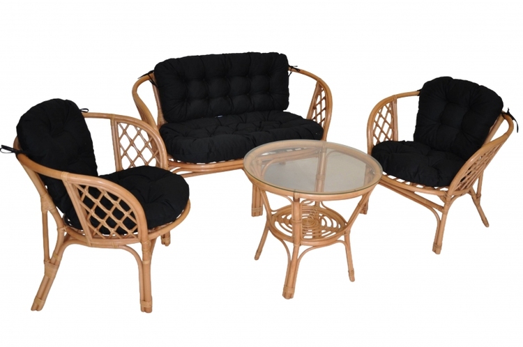 Ratanový nábytek – ratanová sedací souprava Bahama je vyrobena z přírodního ratanu s barvou konstrukce v tmavě medovém odstínu. Souprava obsahuje pohovku, 2 křesla, stolek se sklem a kompletní sadu polstrů.
