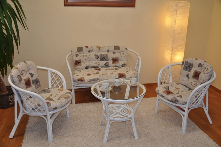 Ratanový nábytek – ratanová sedací souprava je vyrobena z přírodního ratanu s barvou konstrukce odpovádající fotografii výrobku,obsahuje lavici,2 křesla a stolek se sklem, kompletní sadu polstrů vyrobených v České republice. | Barva ratanové konstrukce je bílá.Hlavní spoje ratanové konstrukce jsou šroubovány.Rozměr lavice 115×66×73 cm, nosnost lavice 150 kg.Rozměr křesla 68×66×73 cm, nosnost křesla 110 kg.Výška sedu je příjemných 44 cm.Stolek výška 55 cm, průměr stolku 65 cm.Polstry na tuto sedací soupravu Bahama jsou vyrobeny v České republice. Polstry jsou vyrobeny z kvalitní látky a vyznačují se vysokou kvalitou zpracování.Polstry pro nás vyrábí firma AXIN Cuschions s.r.o., která zaměstnávávýhradně místní vyučené švadleny z České republiky. Tímto způsobem sesnažíme podporovat výrobu a zaměstnanost v naší republice.Náplň polstrů je drcený molitan a polstry lze prát ručně na 40o C.