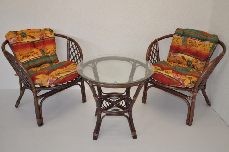 Ratanová sedací souprava Jawa vychází konstrukčně z velice oblíbené sedací soupravy Bahama. Sedací soupravu prodáváme jako celek 2 křesílka, stolek se sklem a sadu polstrů.| Sedací souprava je vyrobena z přírodního ratanu.Barva ratanové konstrukce i výpletu je hnědá.Velikost křesla 67×65×72 cm, nosnost křesla je 110 kg, výška sedu je 42 cm.Průměr skleněné desky stolku je 60 cm, výška stolku je 56 cm.Polstry jsou vyrobeny v Indonesii.