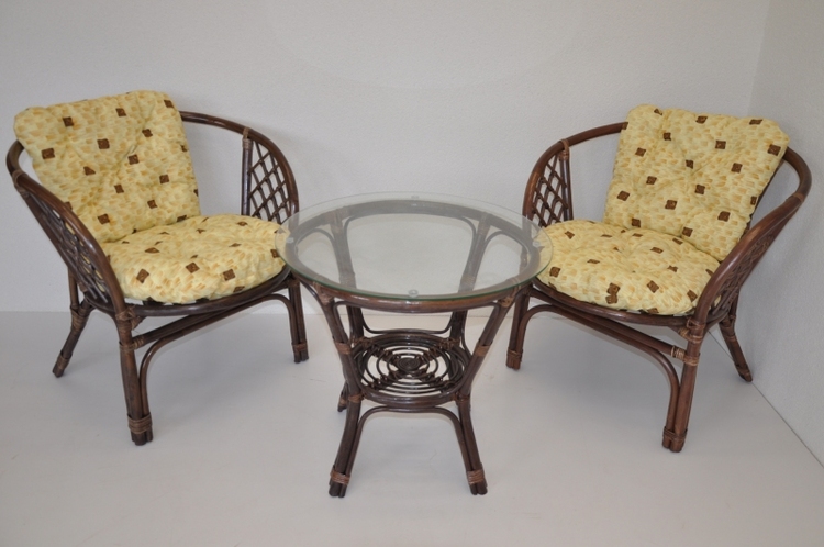 Ratanová sedací souprava Jawa vychází konstrukčně z velice oblíbené sedací soupravy Bahama. Sedací soupravu prodáváme jako celek 2 křesílka, stolek se sklem a sadu polstrů.