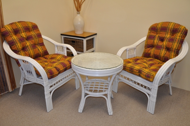 Ratanová sedací souprava je vyrobena z přírodního ratanu z masivních ratanových tyčí. Součástí soupravy jsou 2 křesla, stolek a sada polstrů. | Konstrukce ratanové sedací soupravy je na většině míst trojitá a tím velice pevná. Křesla jsou velice pohodlná díky rozložitému tvaru a  kvalitním polštářům.