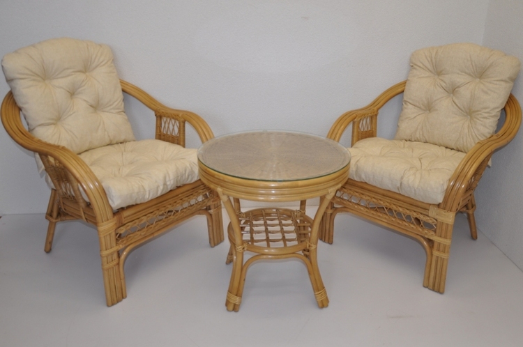 Ratanová sedací souprava je vyrobena z přírodního ratanu z masivních ratanových tyčí. Součástí soupravy jsou 2 křesla, stolek a sada polstrů. | Konstrukce ratanové sedací soupravy je na většině míst trojitá a tím velice pevná. Křesla jsou velice pohodlná díky rozložitému tvaru a  kvalitním polštářům.