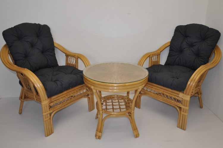 Ratanová sedací souprava je vyrobena z přírodního ratanu z masivních ratanových tyčí. Součástí soupravy jsou 2 křesla, stolek a sada polstrů. | Konstrukce ratanové sedací soupravy je na většině míst trojitá a tím velice pevná. Křesla jsou velice pohodlná díky rozložitému tvaru a  kvalitním polštářům.