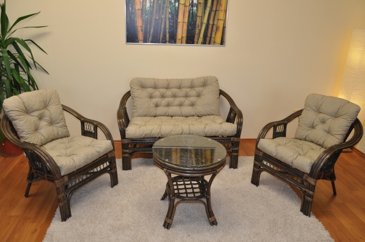 | Konstrukce ratanové sedací soupravy je na většině míst trojitá a tím velice pevná. Křesla a pohovka jsou velice pohodlné díky rozložitému tvaru a  kvalitním polštářům.